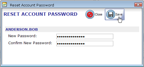 2. Select a user account, and then click Reset Password. The Reset Account Password dialog opens.